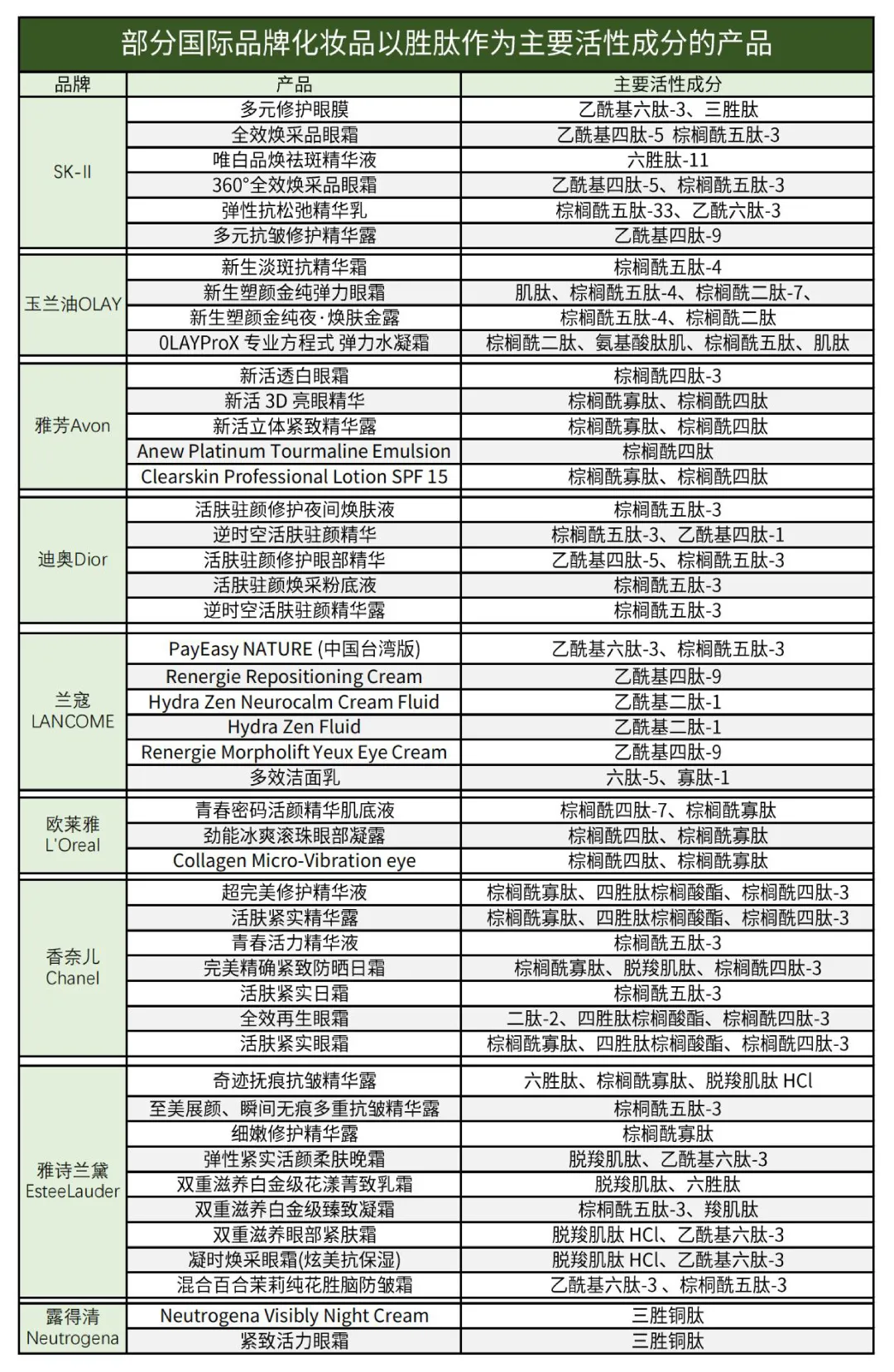 2011 年,国外多肽护肤年销售额已超过160亿美元,并以每年30%~40%的速度递增。根据Mordor lntelligence数据,化妆品多肽合成全球市场预计在2022-2027年的预测期内年复合增长率为5.5%。目前已有多个国际知名品牌推出了多肽化妆品:玉兰油(OLAY),雅芳(Avon)、雅诗兰黛(Estee Lauder)、兰蔻(LANCOME)、欧莱雅(L'Oréal)、香奈儿(Chanel)、迪奥(Dior)、SK-II等,掀起多肽护肤热潮。